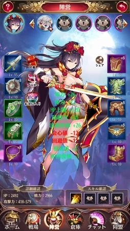 • 装備強化:キャラに装備をセット。セット効果を意識して育成